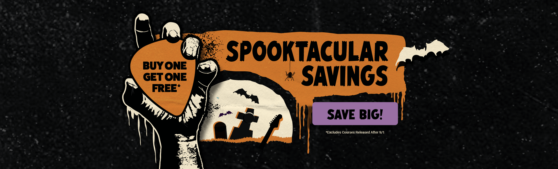 Stock up on guitar lessons! For a limited time, when you buy any course, song lesson, or jam, you’ll get another one of equal or lesser value absolutely FREE. No promo code needed — your discount applies automatically in the cart. Excludes newly released courses launched after September 1st. Mix and match your favorites and double your learning for half the price!